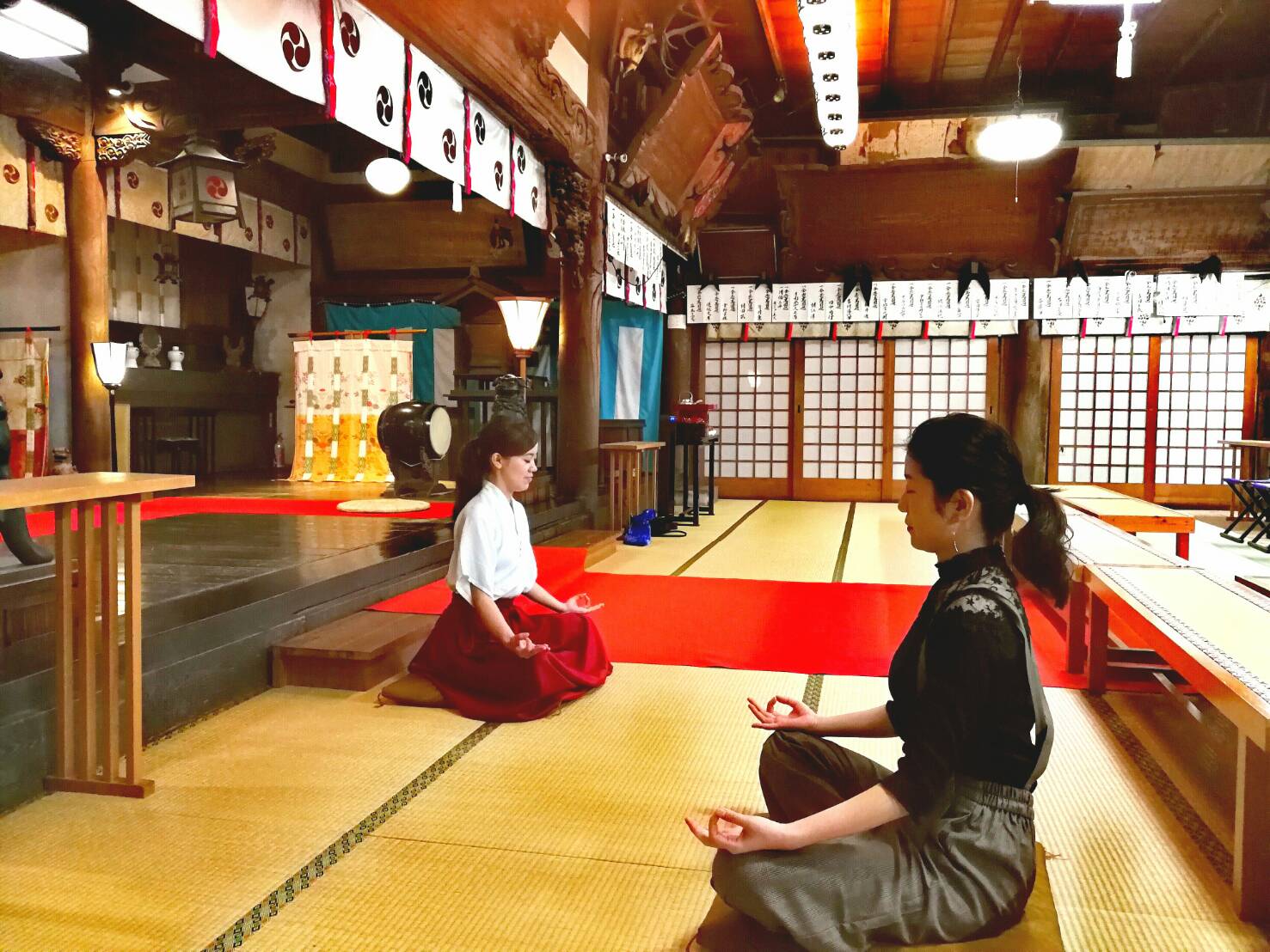 神社拝殿で 禅 ヨガ 金沢で人気のパワースポット 石浦神社 で禅 ヨガで心身を整えよう 禅 ヨガ Sun Hi じゃらん遊び体験